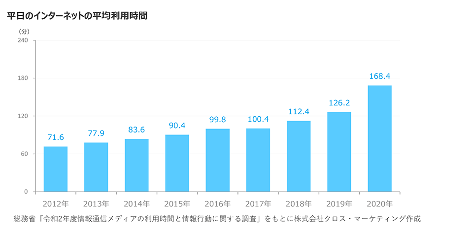 出典:総務省「令和2年度情報通信メディアの利用時間と情報行動に関する調査」