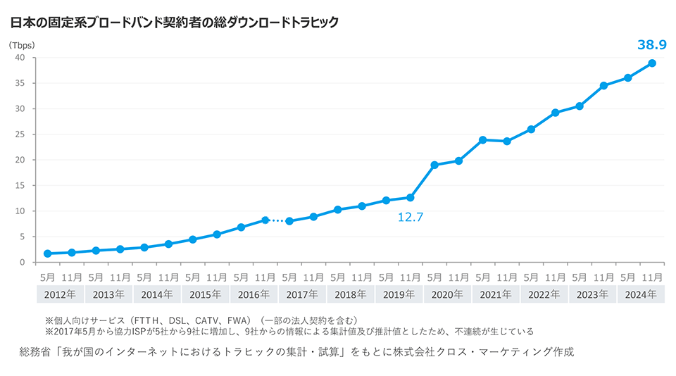 出典:総務省「我が国のインターネットにおけるトラヒックの集計・試算」