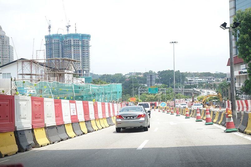 KLでは新しい町や駅、コンドミニアムや商業施設が次々と建設されていますので、道路事情も刻々と変化し、数週間ごとに車線レイアウト変更や道幅の拡張が行われています。