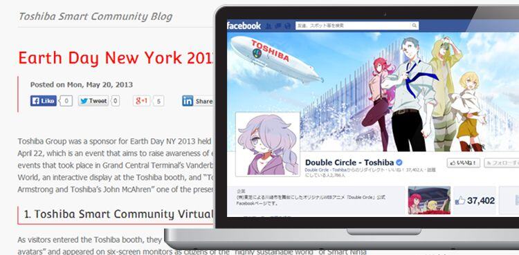2012年に、Smart Communityの多面的な要素や事実を紹介しつつ、その理解を深め促進するため、ソーシャルメディアを活用した「Smart Community Social Lab」というオンライン上でのコミュニティを作りました。 スマートコミュニティ関連の様々なコンテンツを、中立的な立場でユーザーに投げかけ、双方向で意見交換を行うような試みを続けています。Facebook、Twitter、Pinterest、Tumblrから始め、LinkedInのShowcaseページも開設し、インバウンドマーケティングの見込客獲得にも活かしています。また、YouTubeビデオとして作成した「Smart Ninja」とも連動しています。「Smart Community Social Lab」の「Smart Ninja Kid」は、自然との共生を図るシンボルとして、スマートコミュニティに関する情報や、持続可能な社会作り、地球環境の保全といったメッセージをわかりやすく伝える姿と、親しみやすく楽しいキャラクターで、オフラインのイベントでも人気を博しています。