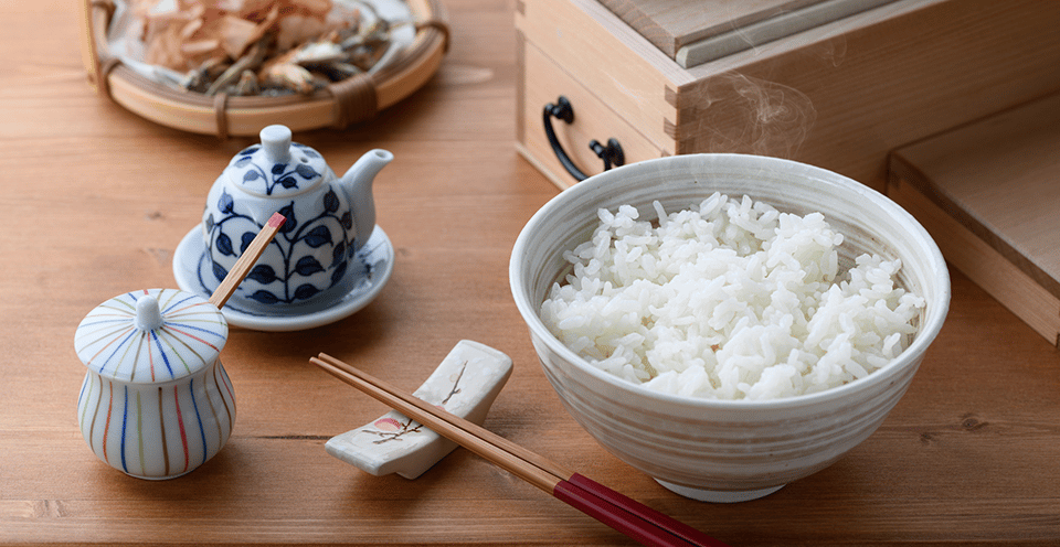 脳はブドウ糖を栄養にして働いています。起きたときはブドウ糖が不足しているため、集中力や記憶力が低下している状態です。 そこで、朝食にごはんを食べることでブドウ糖が補給でき、頭も身体もすっきりした状態でスタートできます。