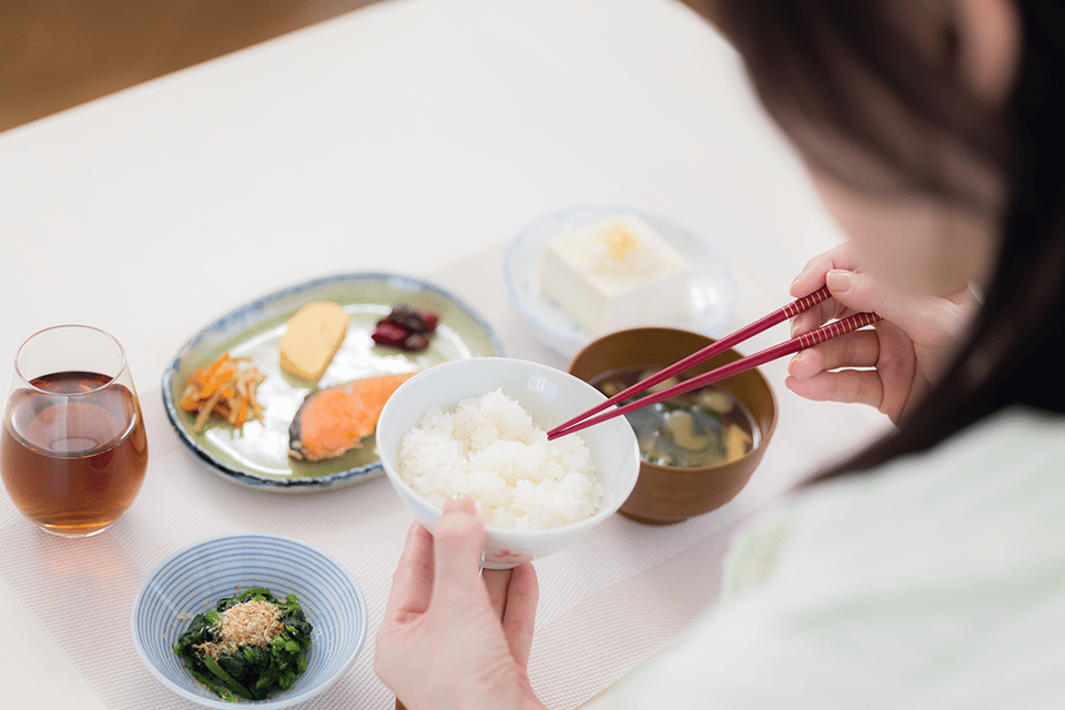 ごはんを食べるときは、基本的に和食をベースにしたおかずを選ぶ方が多いのではないでしょうか。和食なら魚やみそ汁を付け合わせるため、ごはんを選ぶことで糖質や脂質の摂りすぎを防げます。