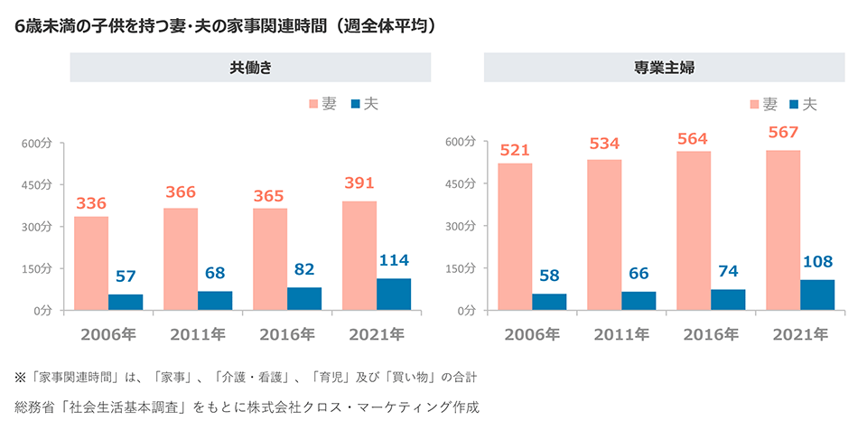 こうした背景をふまえ、夫の家事・育児参加を前提とした商品・サービスの開発やマーケティングが今後ますます求められます。