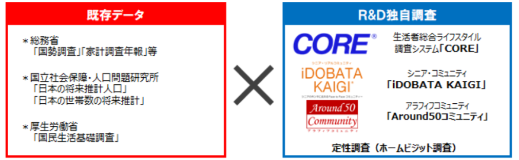 政府の公開データと独自の市場調査を組み合わせて作成されたシニア生活者の全体像を把握できるレポートです。シニア世代の経済状況、生活意識と行動、健康、食生活、暮らしなどがまとめられています。