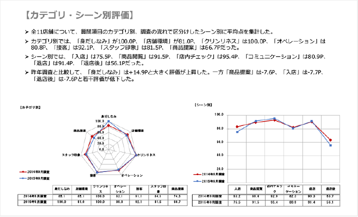 上記のような流れでクロス・マーケティングのミステリーショッパーにお声掛け頂いたのですね。1回目の調査実施は2017年3月ですが、調査対象となった2店舗(日本橋三越本店:50拠点・伊勢丹新宿本店:50拠点)を選択された理由、調査結果から見えてきたことを教えてください。
