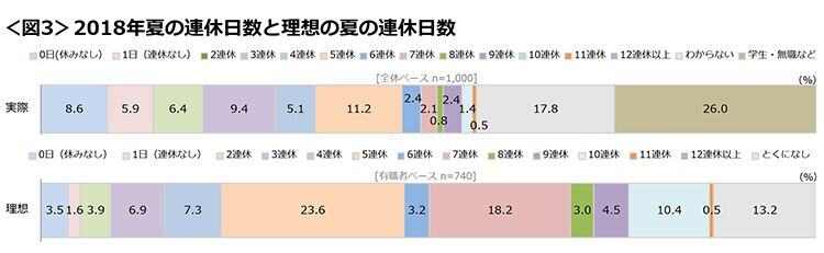 図3 2018年夏の連休日数と理想の夏の連休日数