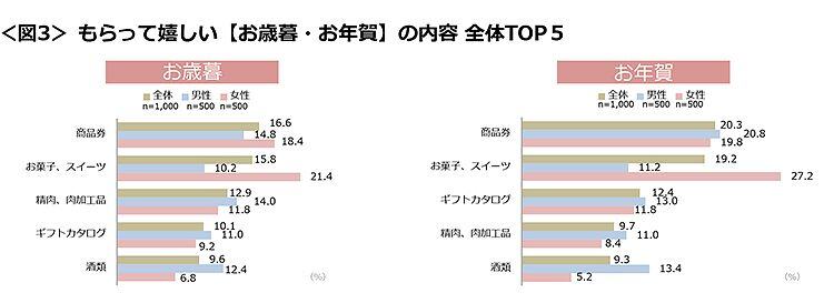 図3 もらって嬉しい【お歳暮・お年賀】の内容 全体TOP5