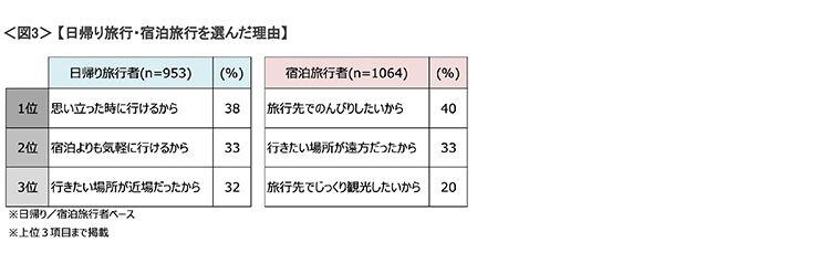 ■【⽇帰り旅⾏・宿泊旅⾏を選んだ理由】⽇帰り旅⾏は「⼿軽さ」、宿泊旅⾏は「時間をかけて楽しむため」