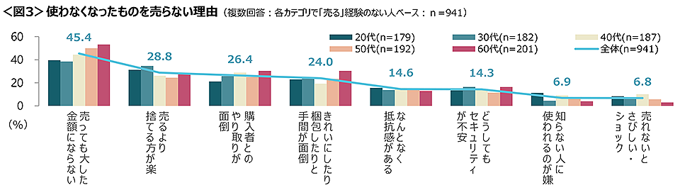 ◆使わなくなったものを売らない理由は、「売ってもたいした金額にならない」が45.4%と突出して高い。<図3>