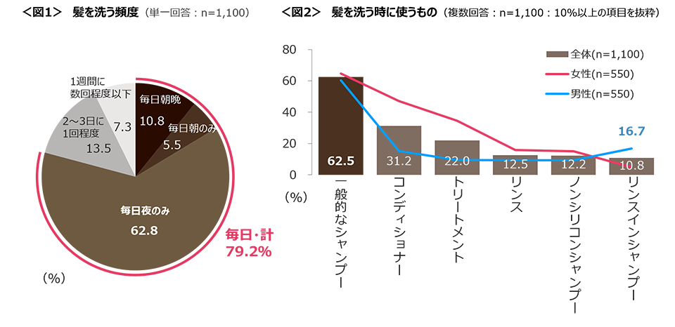 図1 髪を洗う頻度、図2 髪を洗う時に使うもの