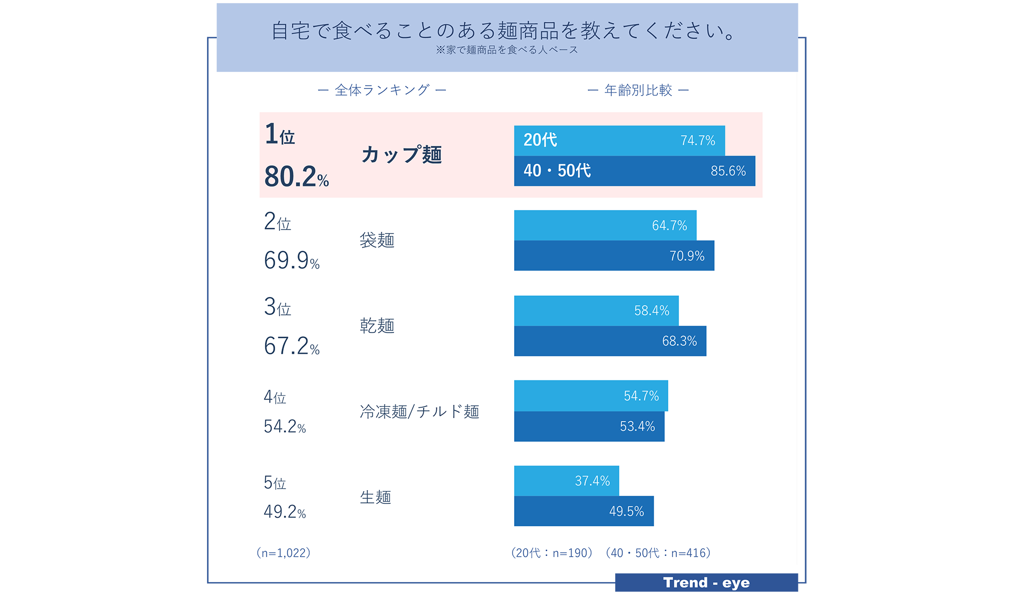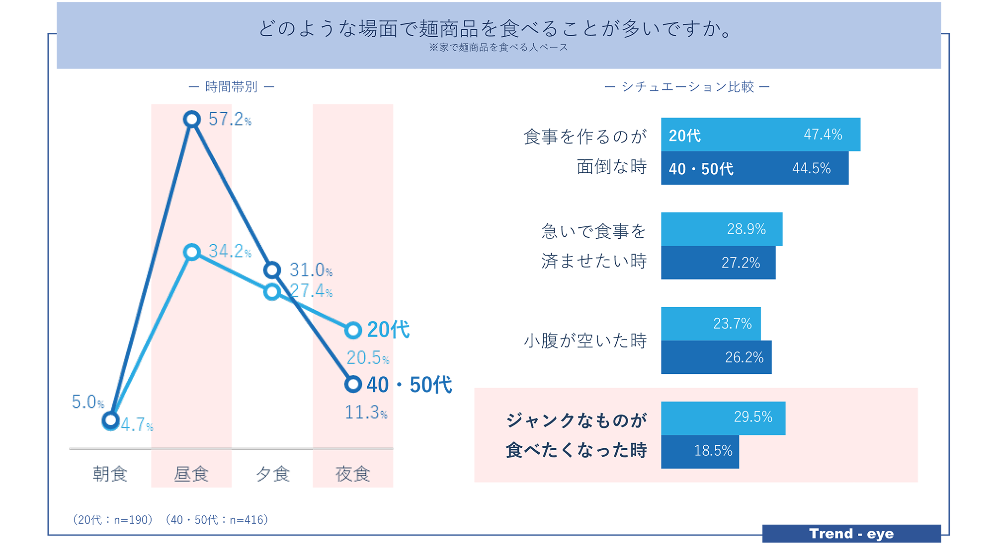20代において麺は“ジャンクフード”と連想される傾向。