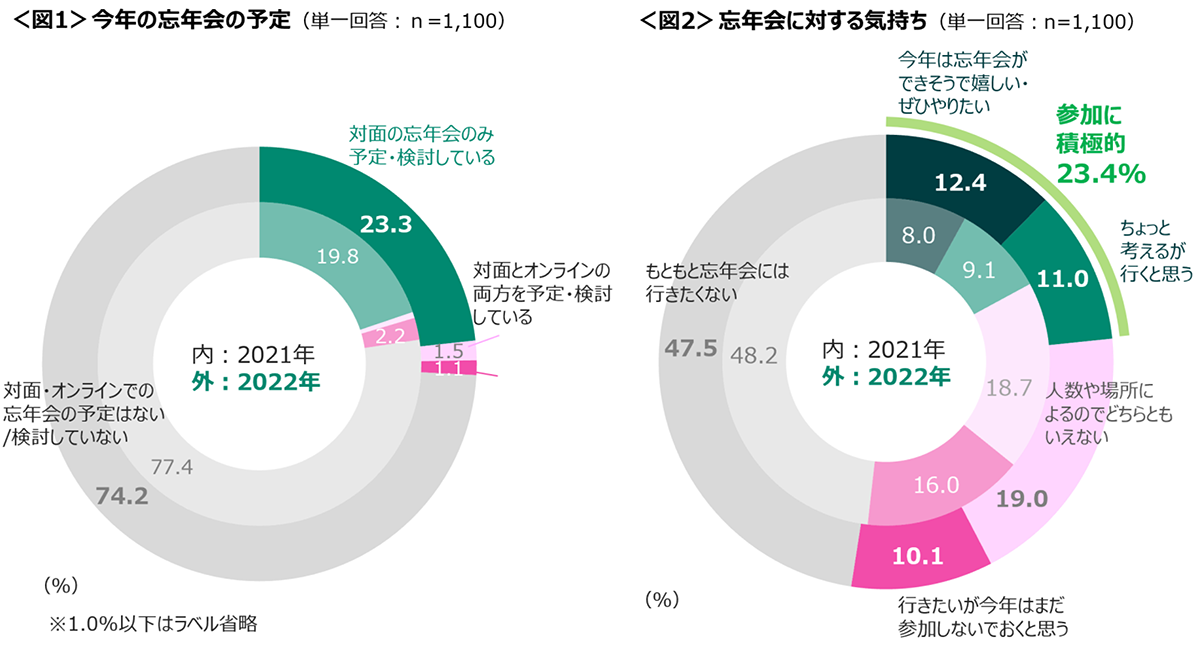図1 今年の忘年会の予定、図2 忘年会に対する気持ち