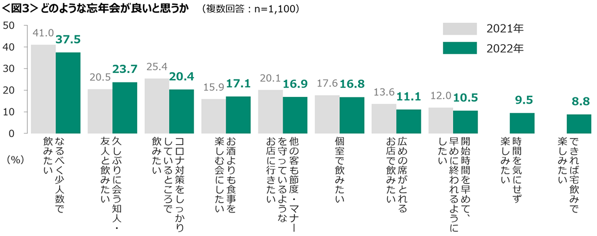 ◆忘年会は、「なるべく少人数がいい」という声が昨年同様にTOP。<図3>
