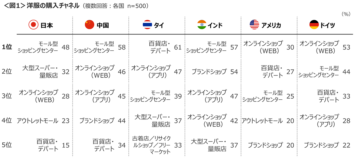 各国で異なる洋服の購入先、日本は店頭購入が多い