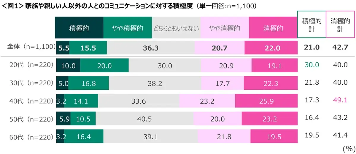 図1 家族や親しい人以外の人とのコミュニケーションに対する積極度