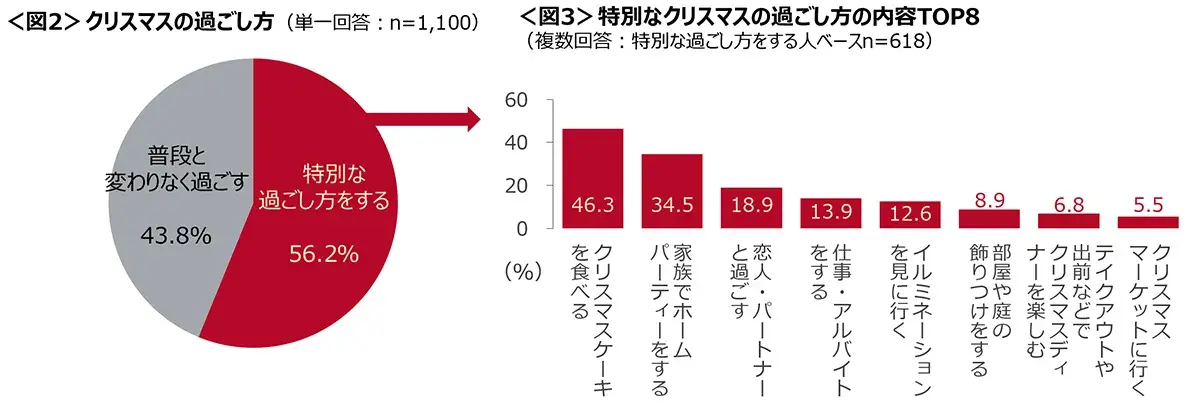 図2 クリスマスの過ごし方、図3 特別なクリスマスの過ごし方の内容TOP8
