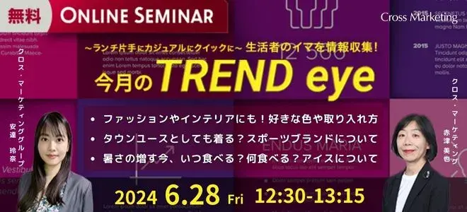 ランチ片手に生活者のイマを情報収集! 今月のトレンドをご紹介 2024年6月28日(金)12時30分~13時15分 無料オンラインセミナー