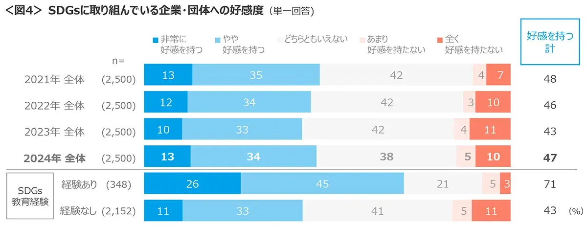 取り組む企業・団体への好感度は昨年より微増