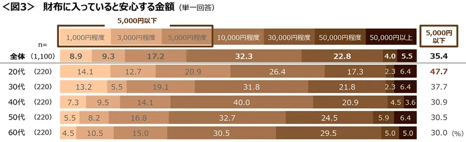 20代は半数近くが「5,000円以下」でも安心と回答。<図3>