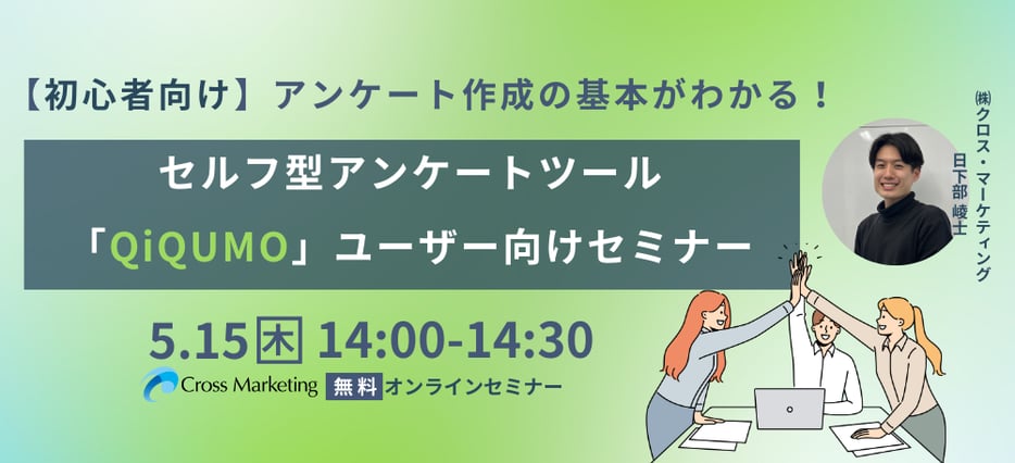 アンケート作成の基本がわかる! セルフ型アンケートツール「QiQUMO」セミナー 2025年5月15日(木)14時~14時30分 無料オンラインセミナー