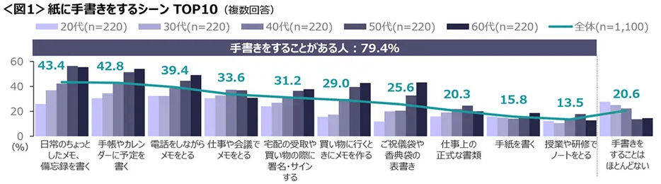40代以下で高まる「手書きはほとんどしない」