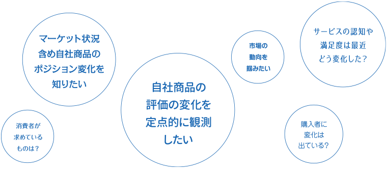 マーケット状況や、自社商品・サービス評価の時系列変化を明らかに。