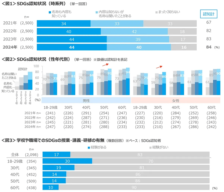 - SDGsの認知率は3年連続横ばいの84%