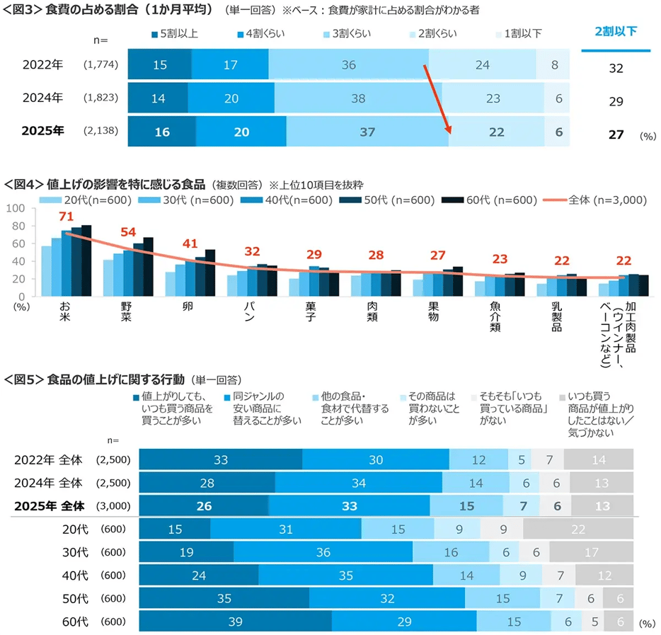 家計に占める食費の割合、3割くらい以上が増加傾向へ - ー 食に関する調査(2025年)外食・食意識行動編 ー