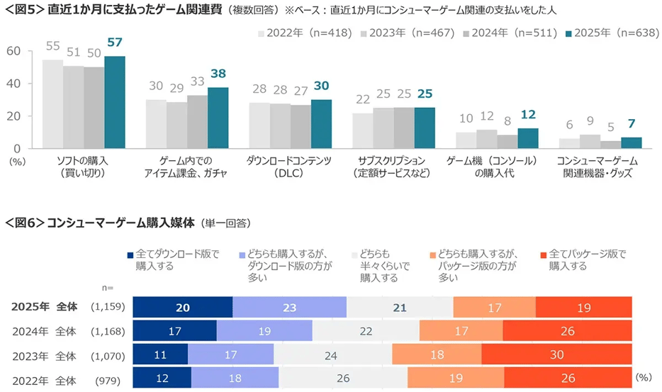 ソフトの購入・ゲーム内課金・ダウンロードコンテンツは支払い増加へ - ー ゲームに関する調査(2025年)コンシューマーゲーム編 ー