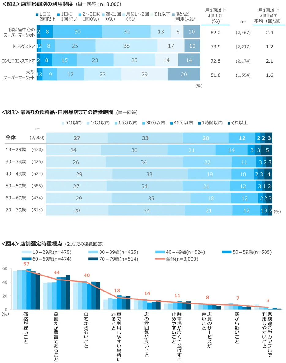 【利用頻度・最寄り店舗までの徒歩時間・店舗選定時重視点】