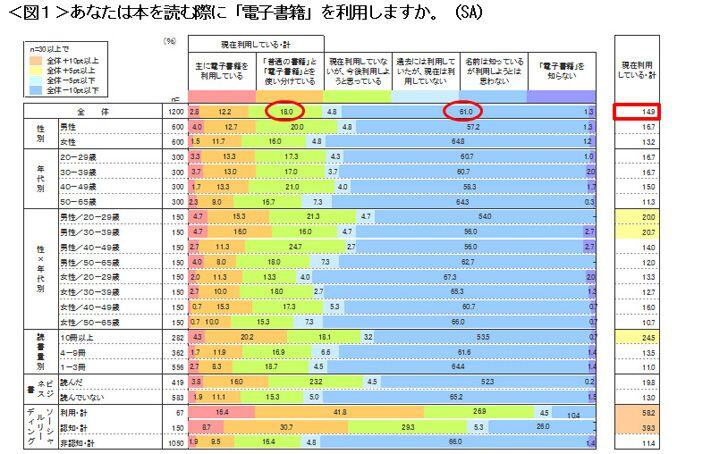 電子書籍を現在利用している人は15%。99%の人が電子書籍を知っているにも関わらず、61%は「名前は知っているが利用しようとは思わない」という結果に<図1>