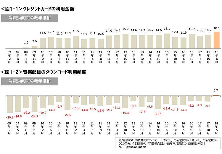 - 「クレジットカード金額」「音楽配信ダウンロード」の利用増加