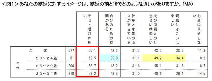 図1あなたの結婚に対するイメージは、結婚の前と後でどのような違いがありますか
