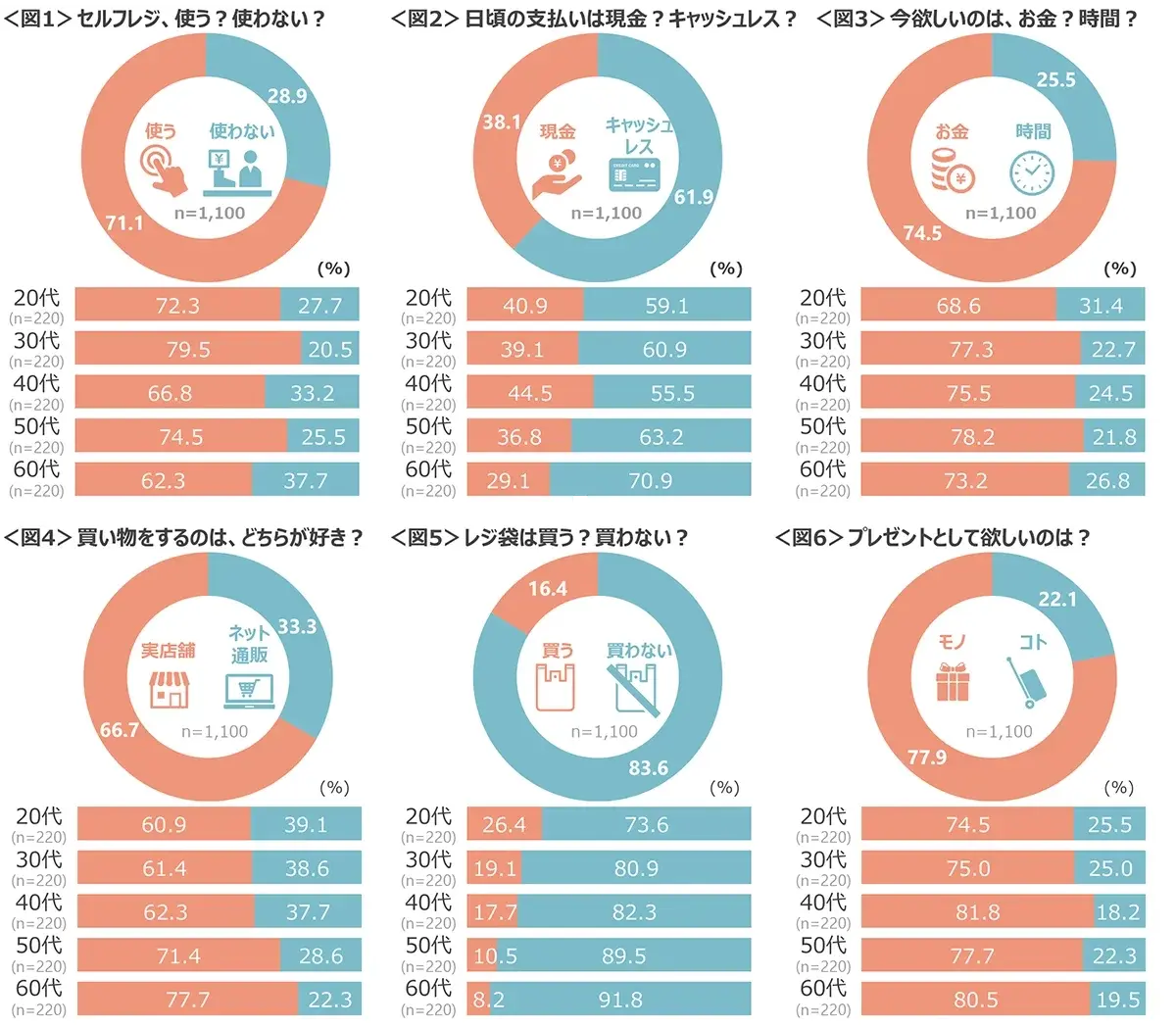 【お金・お買い物編】 セルフレジを「使う」が71.1%と多数派。日頃の支払いは「キャッシュレス」派に軍配。<図1~図9>