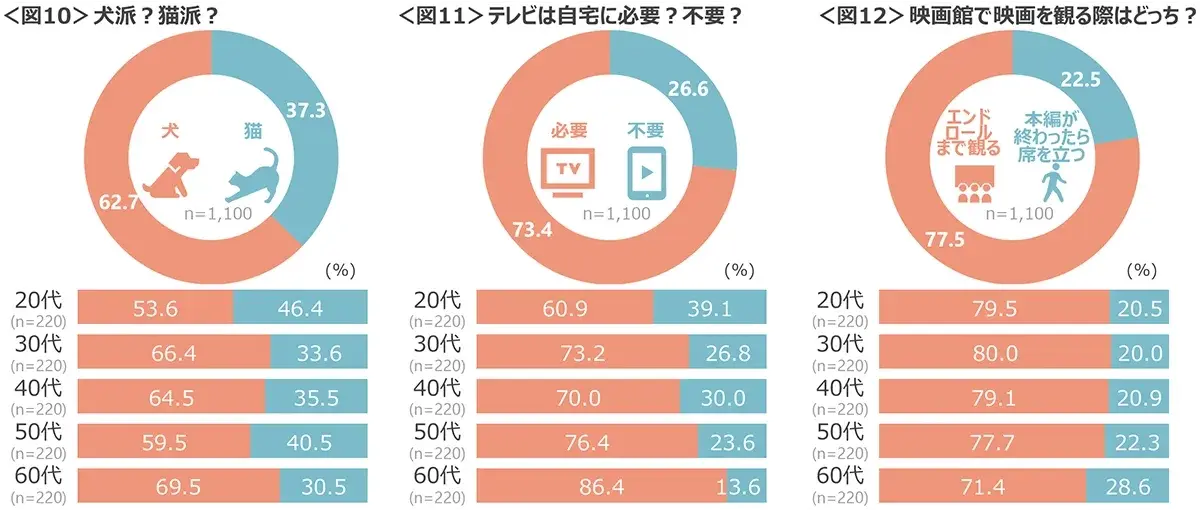 【生活・エンタメ編】 「猫」37.3%に対し、「犬」62.7%と「犬」好きが上回る。<図10~図21>