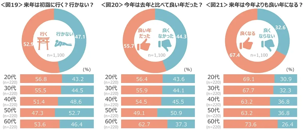 ・初詣には「行く」が52.9%、「行かない」が47.1%と同程度。
