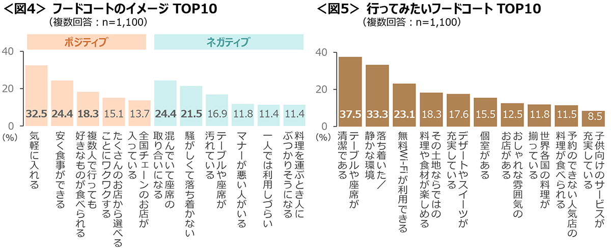 図4 フードコートのイメージTOP10、図5 行ってみたいフードコートTOP10