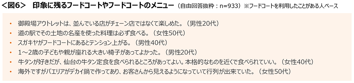 図6 印象に残るフードコートやフードコートのメニュー