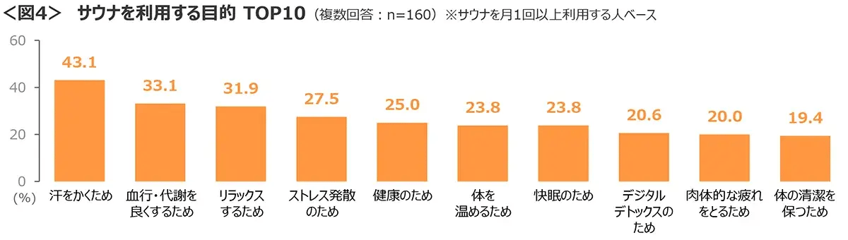 ◆利用する目的は、「汗をかくため」「血行・代謝を良くするため」「リラックスするため」がTOP3。<図4>