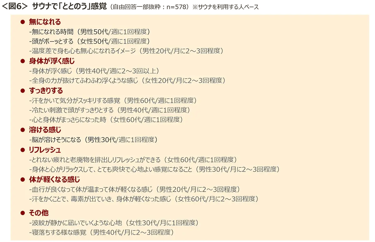 • 「ととのう」感覚は「無になれる」「すっきりする」などさまざま
