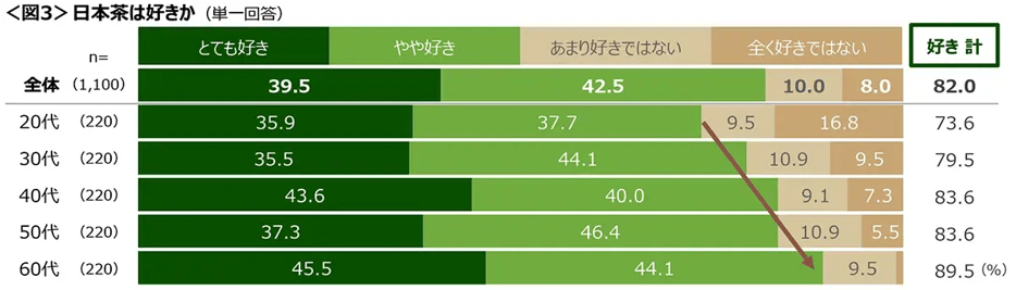 ◆日本茶が好きな人は82.0%で、「とても好き」は39.5%。