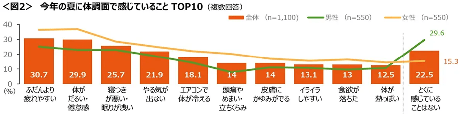 □今年の夏に体調面で感じていること