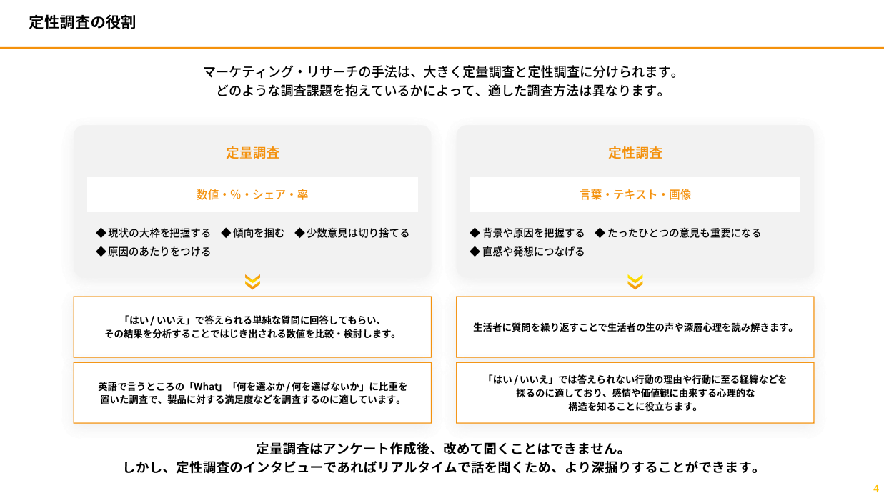 定性調査も知りたいことをただ調査するのではなく、調査の仕方や「何をどう聞くのか」にもコツがあります。