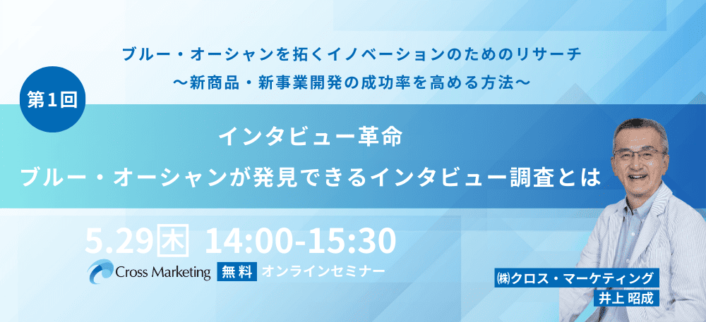 本ウェビナーでは、AIチャットボットが回答者一人ひとりと自然な対話を行い、自由回答の背景にある「なぜ?」を深掘りすることで、これまで見過ごされがちだった、質の高いインサイトを効率的に収集する新サービス「Light Depth(https://www.cross-m.co.jp/service/marketing-research/light-depth)」をご紹介します。