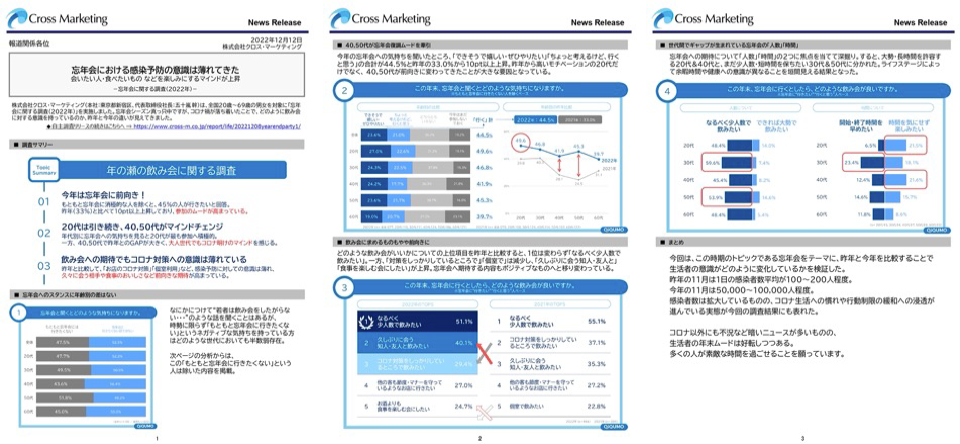 商品・サービスのアピールにつながる結果が得やすくなるかたちでリサーチを実施。訴求点が際立つようなワーディングやグラフなどでリリース文を作成。