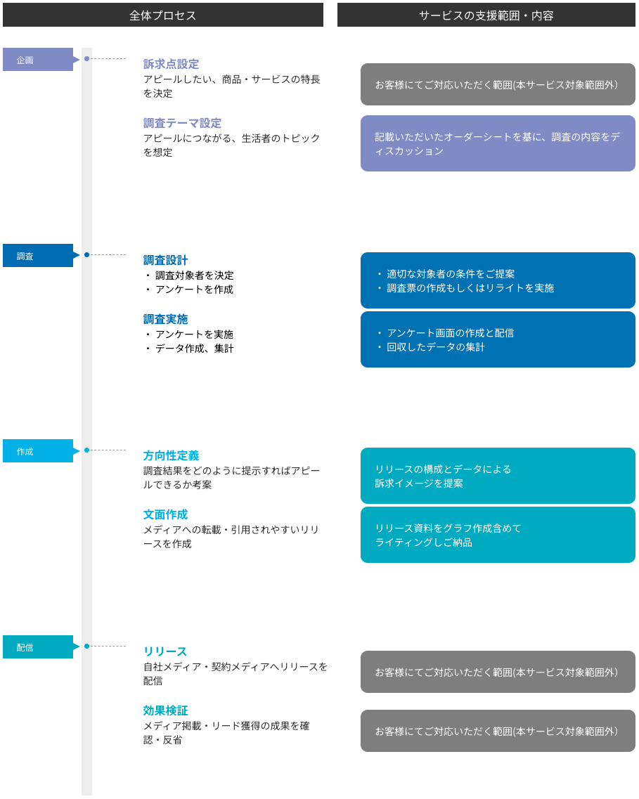 商品・サービスのアピールにつながる内容を生活者視点に転換し適切なリサーチを実施。訴求点は明確にしつつ、実態に沿ったストーリや表現方法でのリリース文を作成。