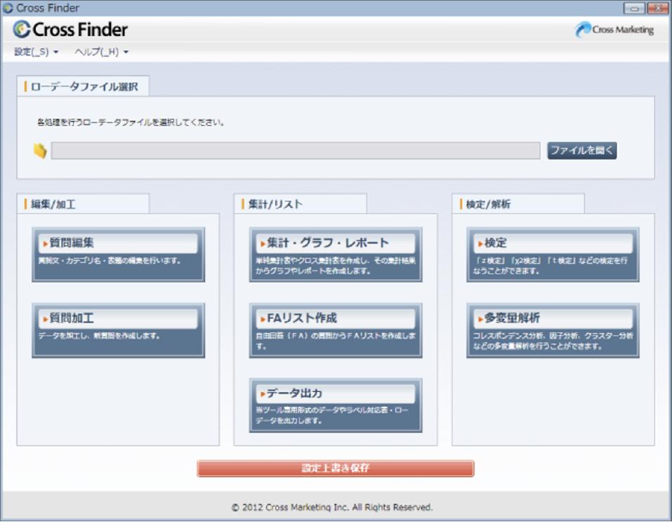 お客様ご自身で簡単に集計できる、CrossFinder2専用のデータも無料でご提供いたします。